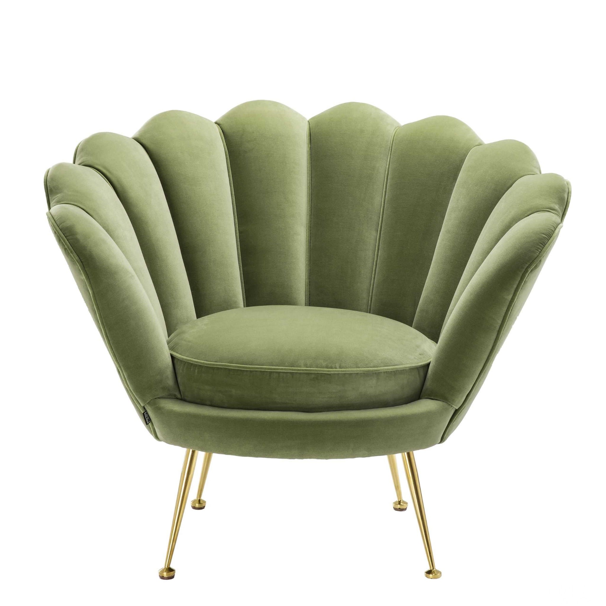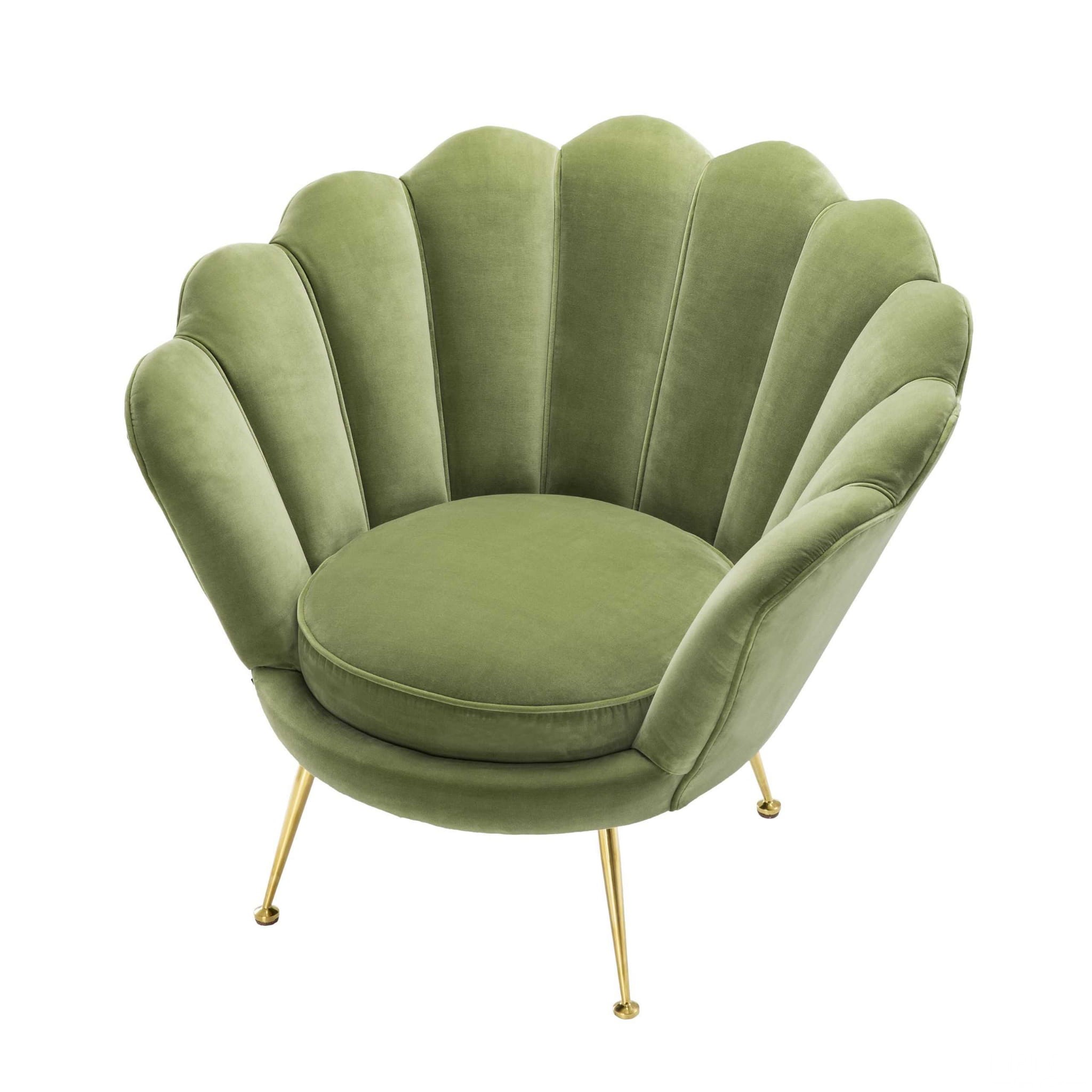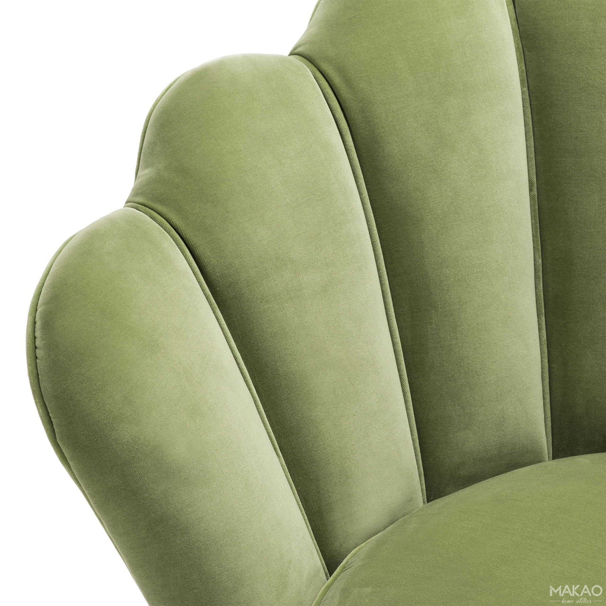 Zrelaksuj się w krześle trapezowym inspirowanym Art Deco, które z pewnością nada Twojemu wnętrzu efekt zachwytu. Dzięki ramie w kształcie muszli, jasnozielonej tapicerce Cameron i zwężającym się mosiężnym nogom to wspaniałe siedzisko emanuje klasycznym urokiem.