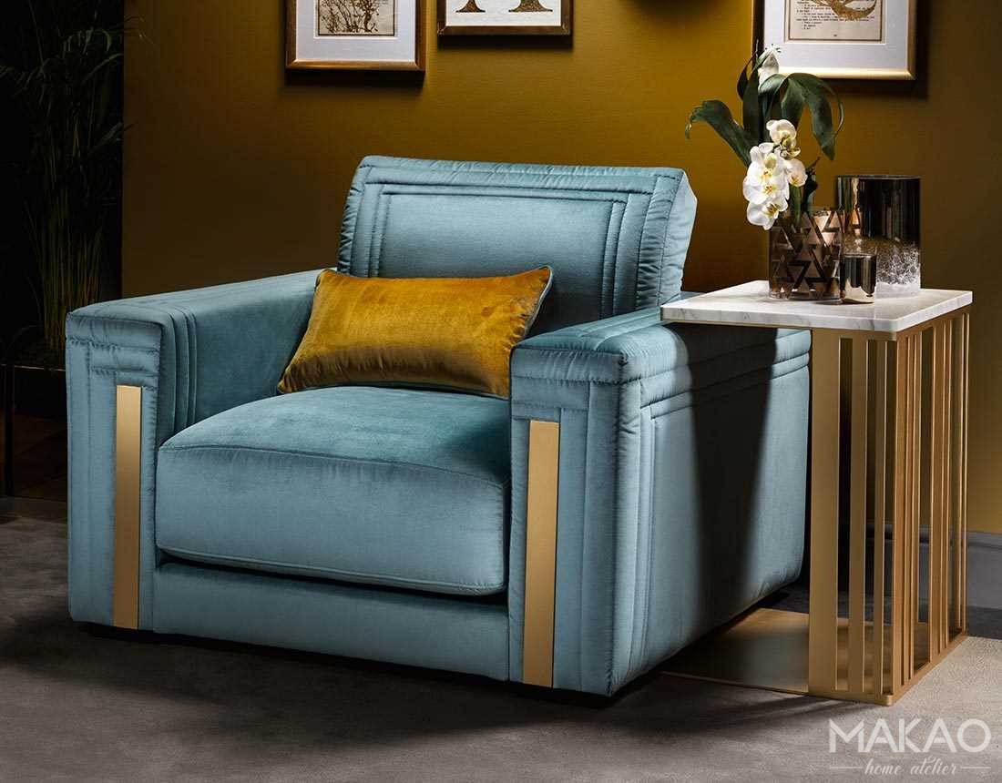 Kolekcję sof i foteli Vollare uzupełnia seria okazjonalnych stolików z delikatnego włoskiego marmuru, które nawiązują do odważnych, pikowanych siedzeń. Przyjęty design jest całkowicie zgodny ze współczesnymi trendami stylistycznymi.