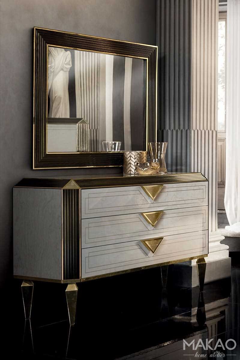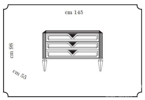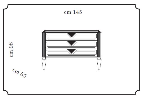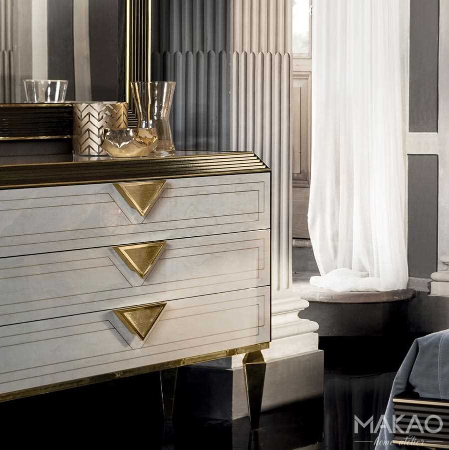 Komoda z trzema szufladami jest przede wszystkim meblem funkcjonalnym, wykonane zdobienia ukazują charakterystyczne cechy kolekcji Bellezza. Komoda w idealnym połączeniu elegancji i kompozycji, wyznacza nowe kierunki projektowania.