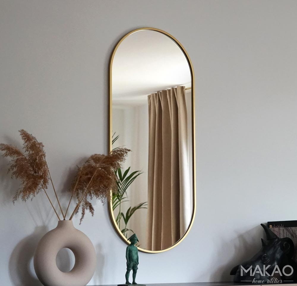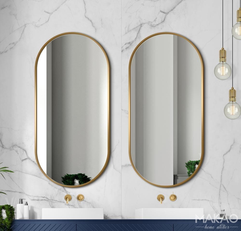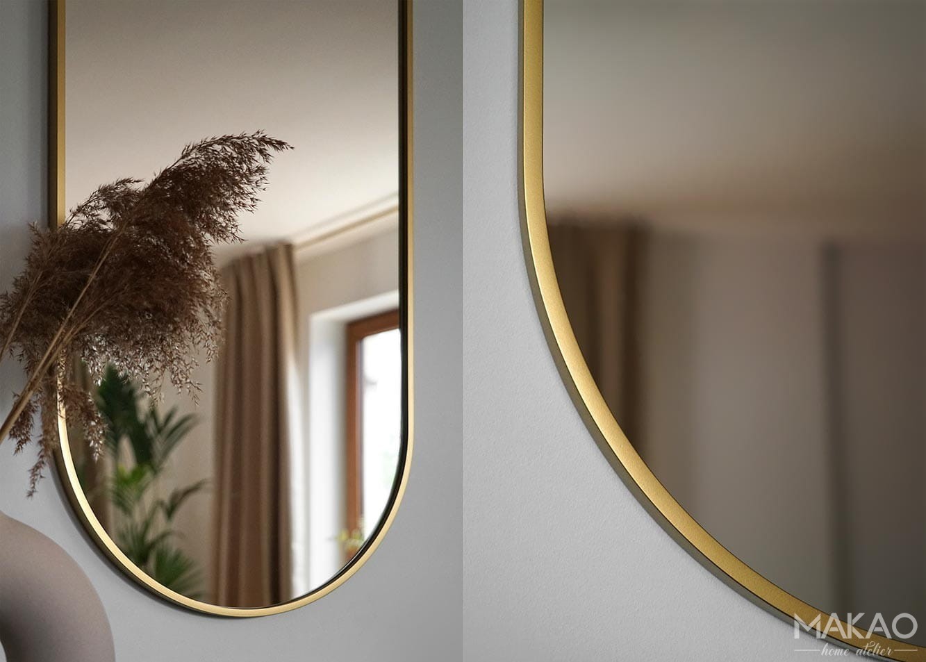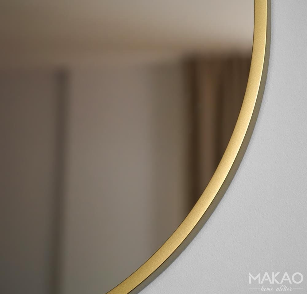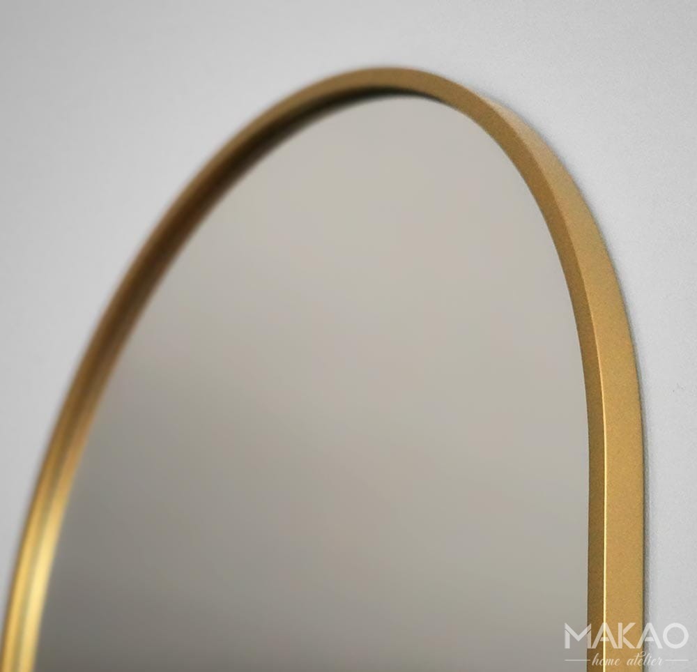 LUSTRO OWALNE W ZŁOTEJ WĄSKIEJ RAMIE na wymiar to owalne lustro w bardzo wąskiej złotej ramce, zaledwie 10 mm. Wykonane jest z dużą dbałością o szczegóły, z wysokiej jakości materiałów wodoodpornych, nadaje się do łazienki. Dostępne w wielu rozmiarach, również duże!