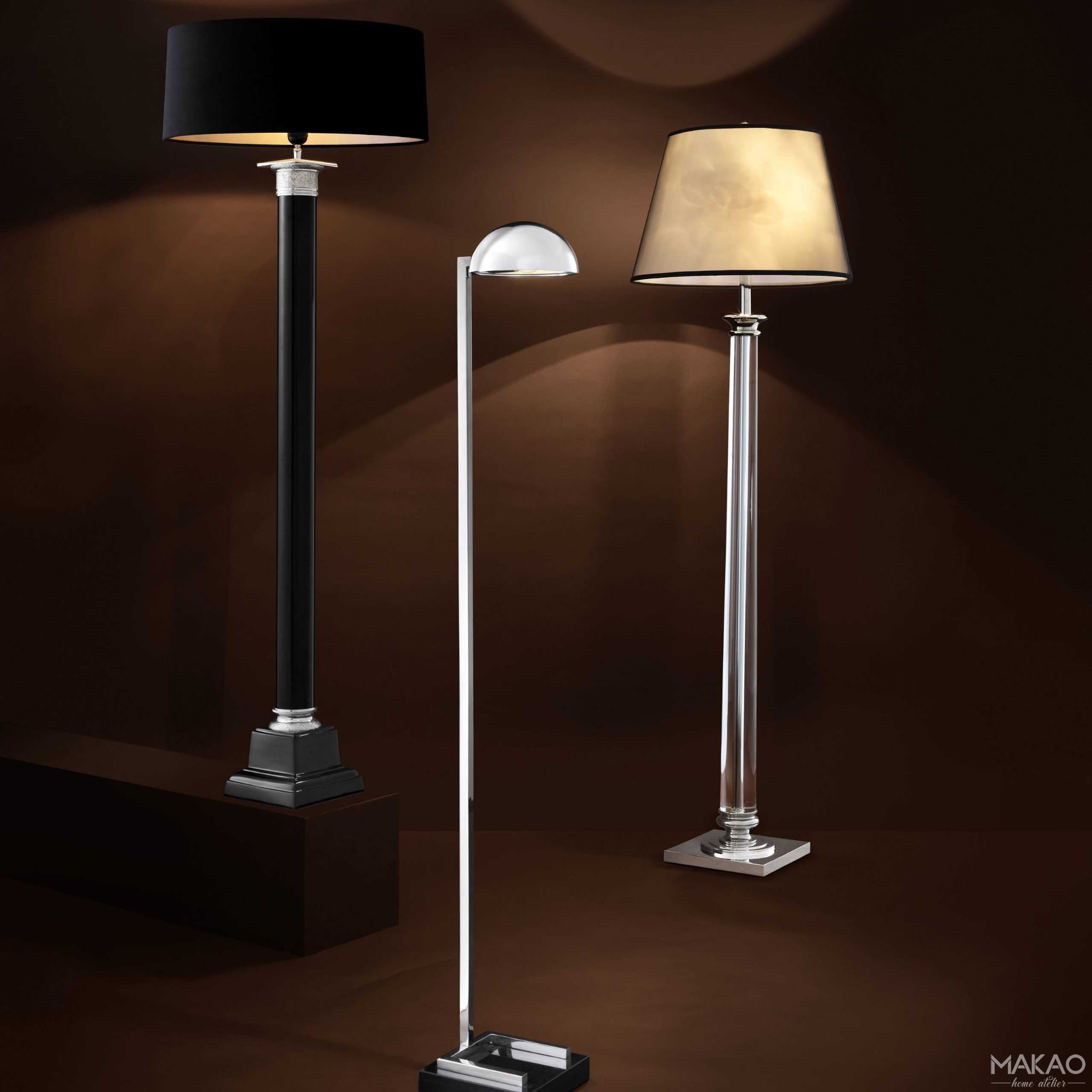 Dodaj wykończenie do swojego wystroju wnętrza dzięki lampie podłogowej Monaco. Promieniując powściągliwą elegancją, to luksusowe rozwiązanie oświetleniowe jest idealnym uzupełnieniem zarówno klasycznych, jak i współczesnych przestrzeni. Zainspirowany kolumnami korynckimi, ma czarną obudowę przypominającą filary i podstawę cokołu z akcentami wykończonymi niklem. Dostarczony czarny klosz zachęca do dekadenckiego oświetlenia.