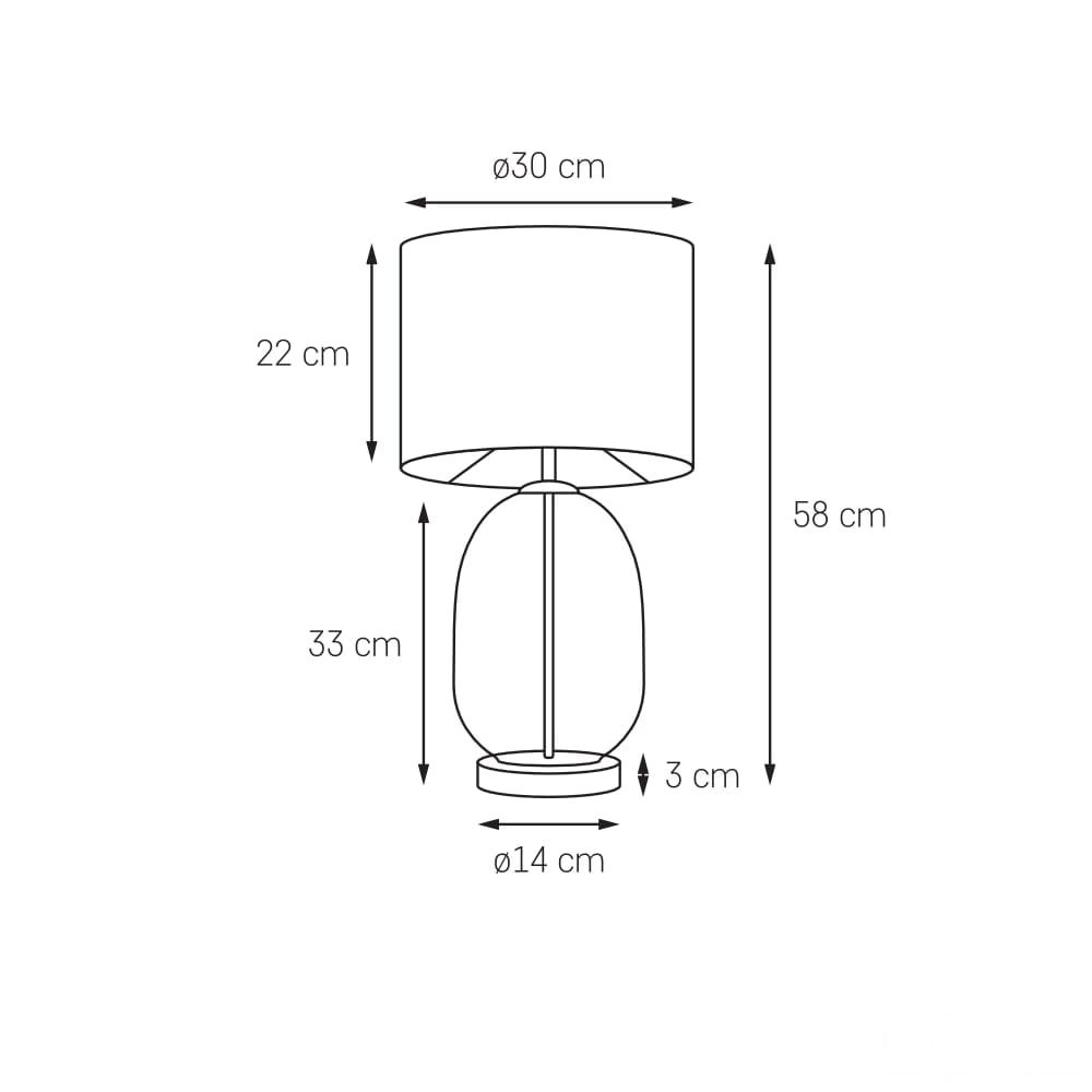 WYS. 58 CM x Ø 30 CM, ABAŻUR WYSOKOŚĆ 22 X Ø 30 CM, PODSTAWA Ø 18 CM |