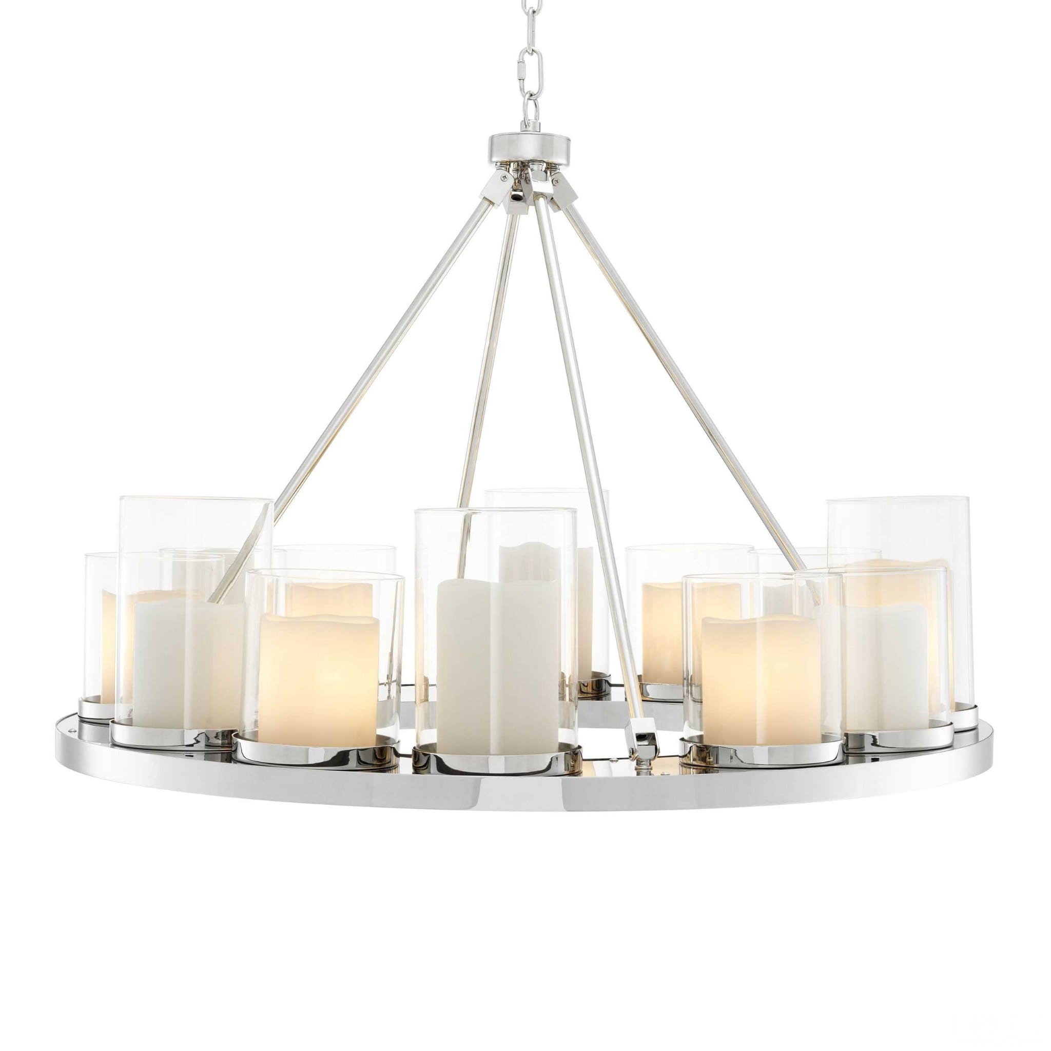Błyszcząca, polerowana płyta ze stali nierdzewnej żyrandola Summit jest podtrzymywana przez mocny daszek sufitowy z ogniwami łańcuchowymi. Ta klimatyczna lampa wisząca mieści 12 wykwintnych szklanych lampionów ze sztucznymi świecami kolumnowymi i 4 wbudowane downlighty LED. Światła w tym żyrandolu można włączać i wyłączać za pomocą dołączonego pilota. Możliwych jest kilka różnych ustawień. Ten żyrandol nie jest ściemniany i nie może być używany ze ściemniaczem. Stwórz ciepłą i przyjazną atmosferę dzięki żyrandolom Summit. Łącząc romantyczny blask świec z industrialną nowoczesnością, te charakterystyczne żyrandole będą promiennym dodatkiem do wystroju Twojego wnętrza.