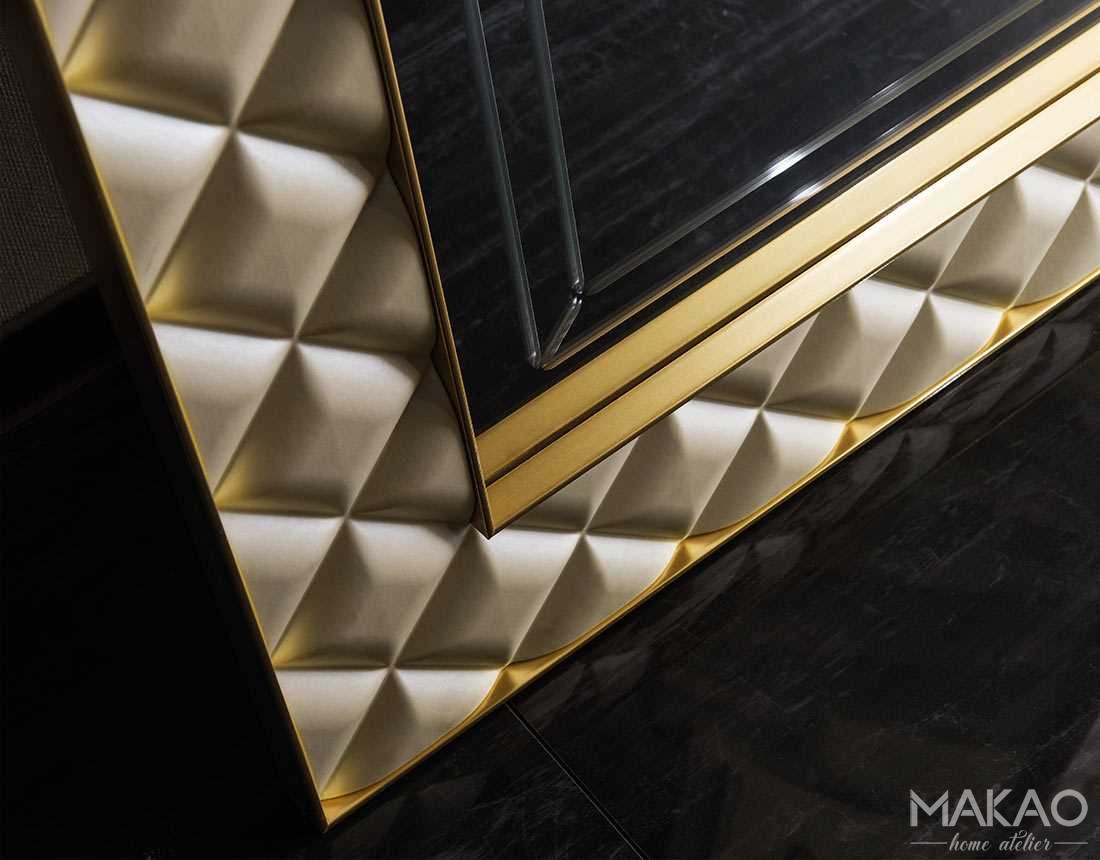 Lustra Fabbri zostały pomyślane jako duże powierzchnie, które odbijają światło, wzmacniając przestrzeń i dekorując ją detalami w kształcie rombu. Starannie dopracowane oprawki z nowoczesnego materiału miłego w dotyku, delikatnego jak tkanina. Zdobione powierzchnie zwiększają jasność w każdym pomieszczeniu i można je dostosować do różnych kontekstów. Niezależnie od tego, czy stoją na ziemi, czy wiszą jak obraz, lustra Fabbri wzbogacą każdy zakątek Twojego domu.