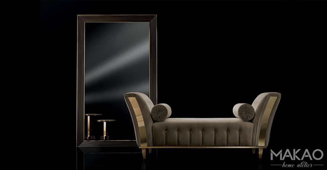Nic tak nie uchwyci światła jak lustro. Lustro osadzone jak kamień szlachetny, w ramie wykończonej wiązem ze złotymi profilami, majestatycznie podkreśla charakter kolekcji Bellezza.