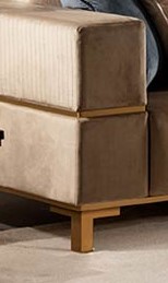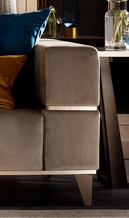 Przytulne siedziska, szerokie oparcia i podłokietniki z pionowym pikowaniem. To cecha charakterystyczna foteli do salonu Gabrielle No 2. W rzeczywistości każdy element ma ostry i mocny kształt, czyste i liniowe formy ozdobione cennymi pozłacanymi wstawkami, które otaczają podłokietniki i podstawę. Modułowe sofy, wygodne fotele i wygodne pufy, które dają możliwość przyjemnego relaksu bez utraty stylu.