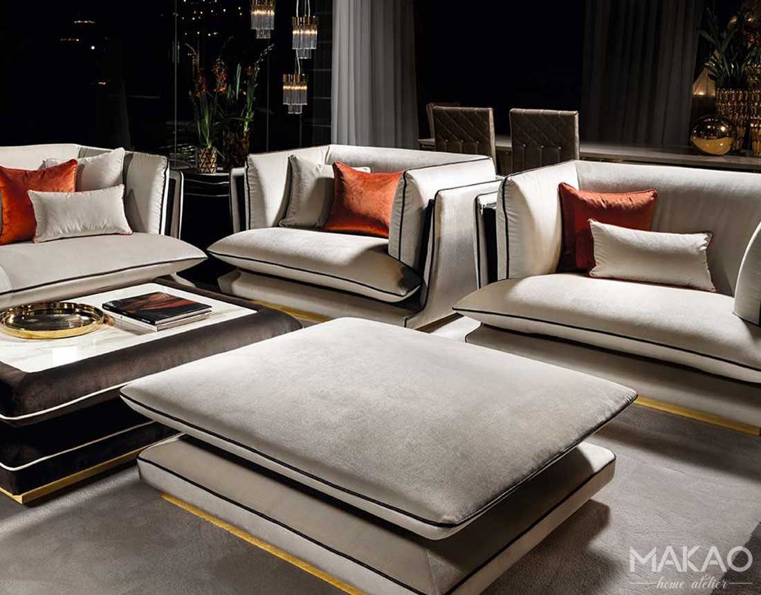 Elegancki kontur sprawia, że pufy Passione są idealnym dopełnieniem aranżacji salonu w stylu nowoczesnym.