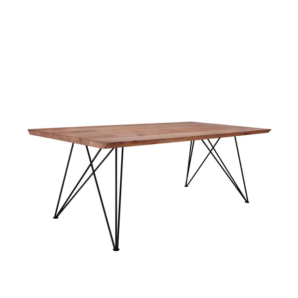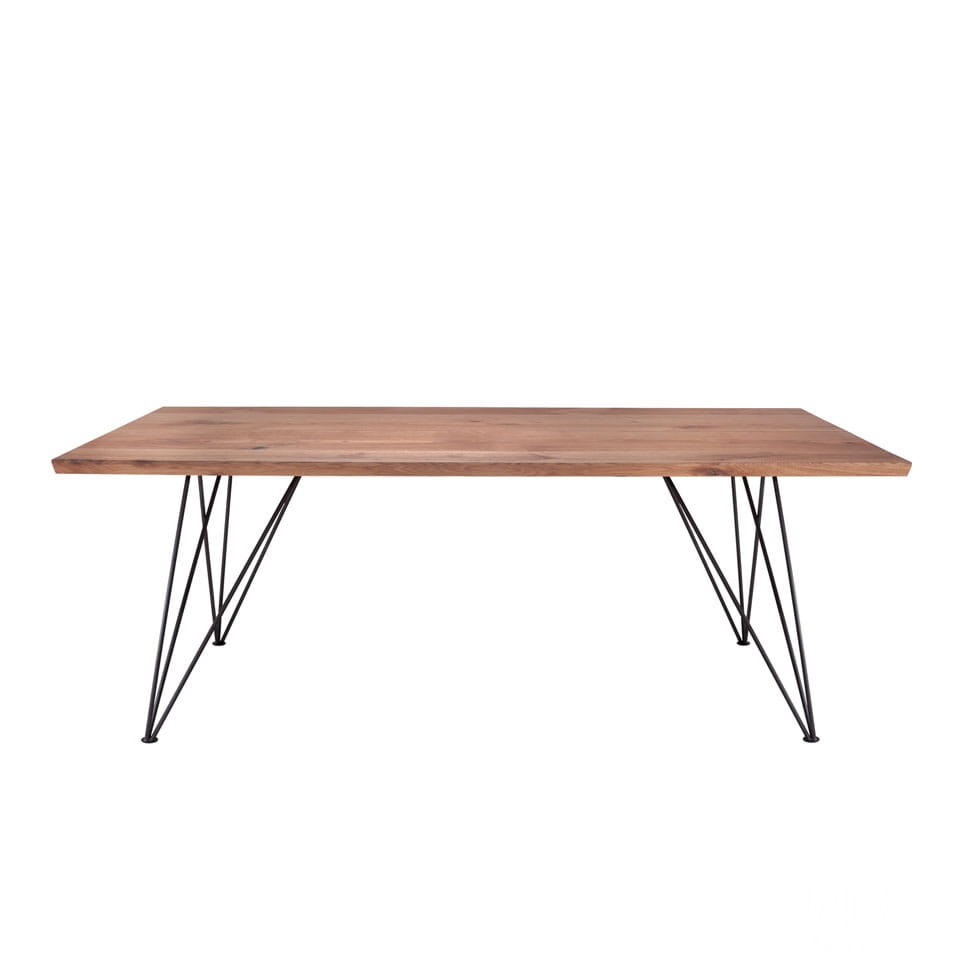 Stół z litego drewna na ażurowych, lakierowanych, metalowych.