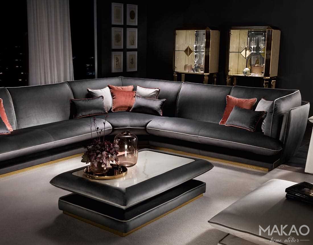 Forma i kształt stolików kawowych Passione nawiązuje do koncepcji sofy. Każdy model jest tworzony z dwoma różnymi wykończeniami gresu porcelanowego a bryły stolików są idealnym uzupełnieniem kolekcji.