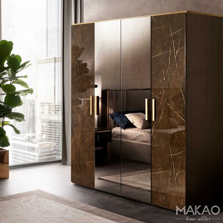 Szafy Essentiale są modułowe i w pełni konfigurowalne dzięki lustrzanym drzwiom wykończonym marmurem lub drewnem wenge. Modułowe umeblowanie to największy atut gwarantujący funkcjonalność. Meble na wymiar pozwalają na optymalizację przestrzeni a całość stylistycznie współgra z pozostałymi bryłami z kolekcji Essentiale.