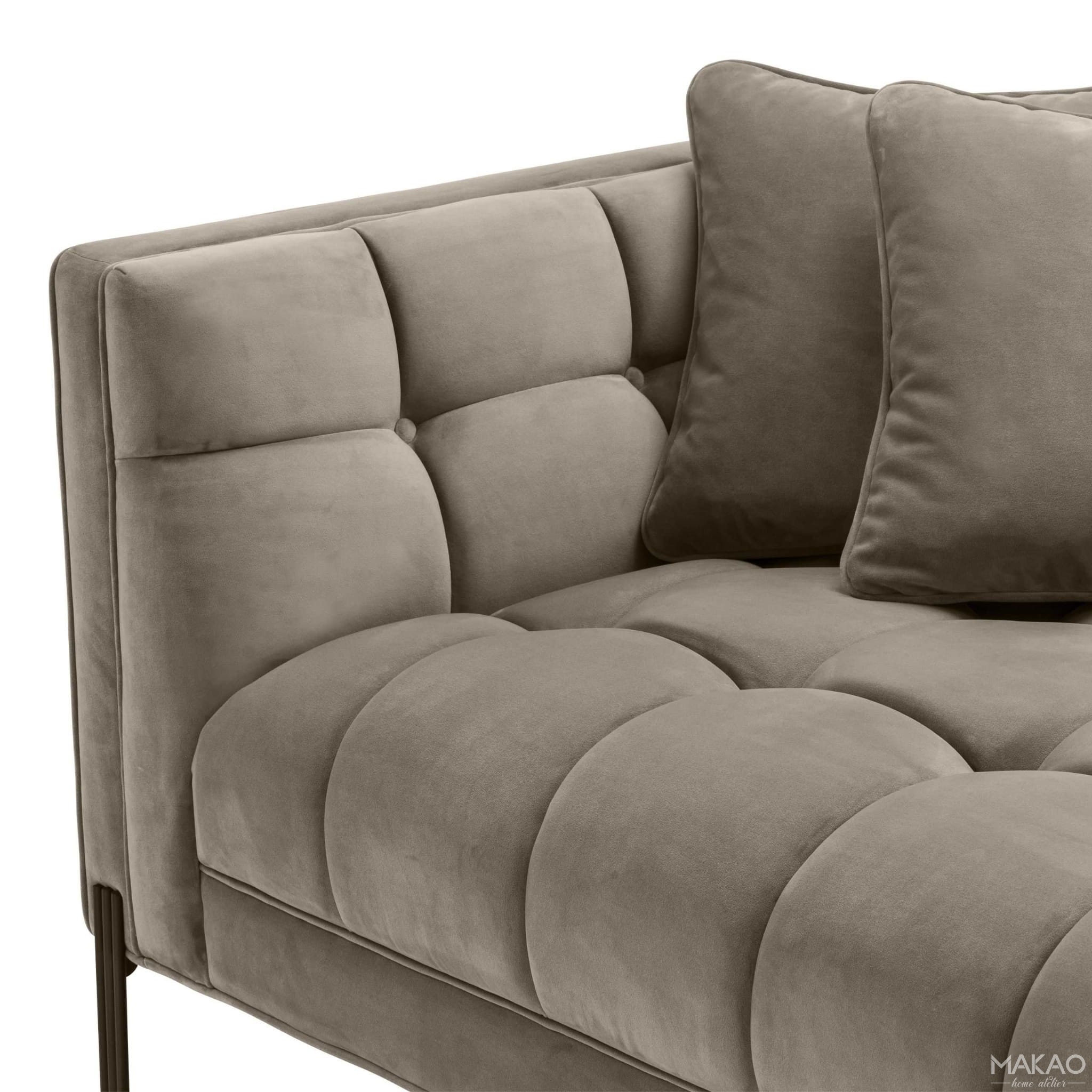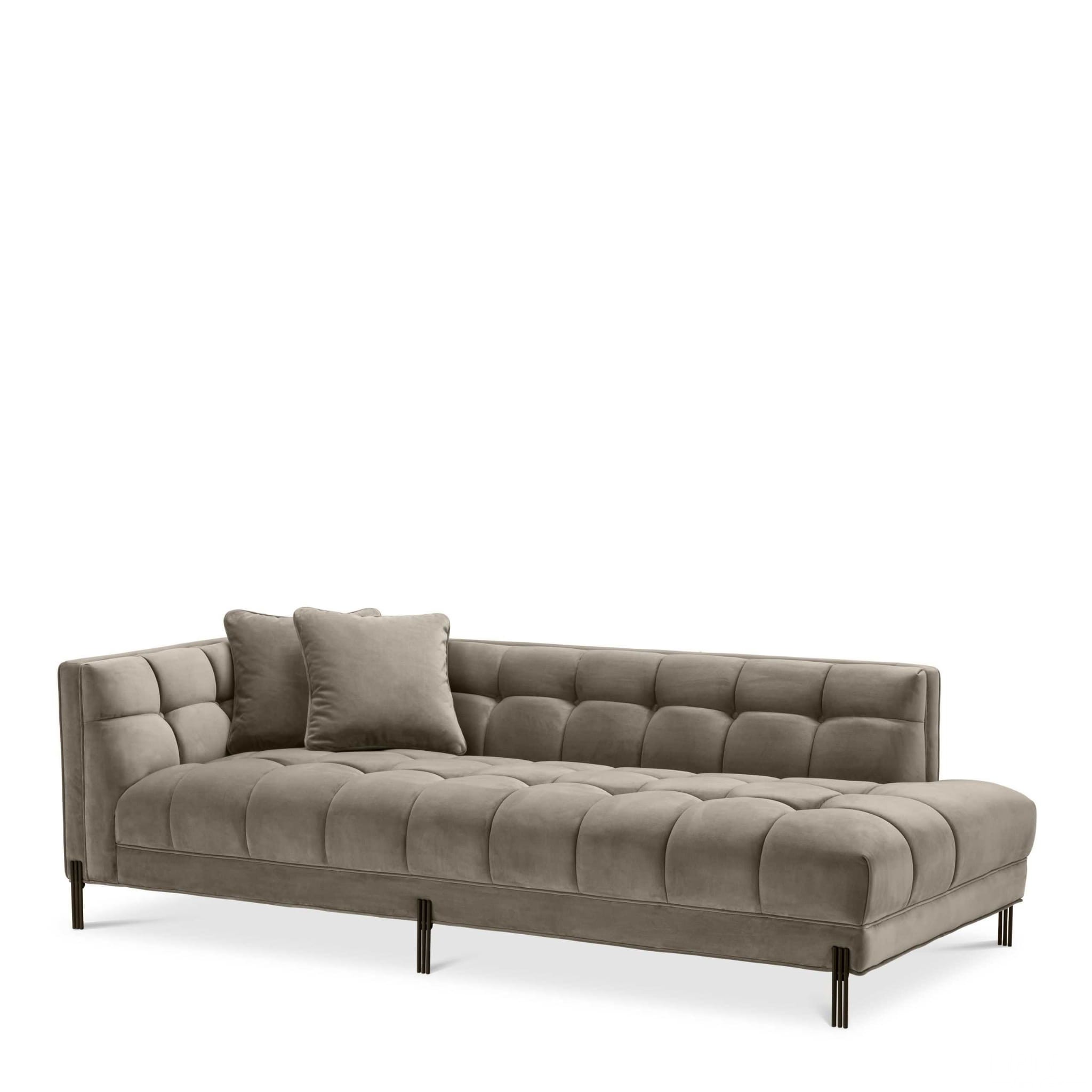 Wspaniała sofa Sienna Right Lounge – Szezlong lewy łączy wygodę z wysokim stylem. Ta elegancka, nowoczesna sofa wypoczynkowa jest pokryta tuftowaną tapicerką z miękkiego szarego aksamitu Savona. Czarne wykończone nogi dodają luksusowego wyglądu.