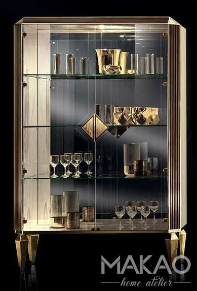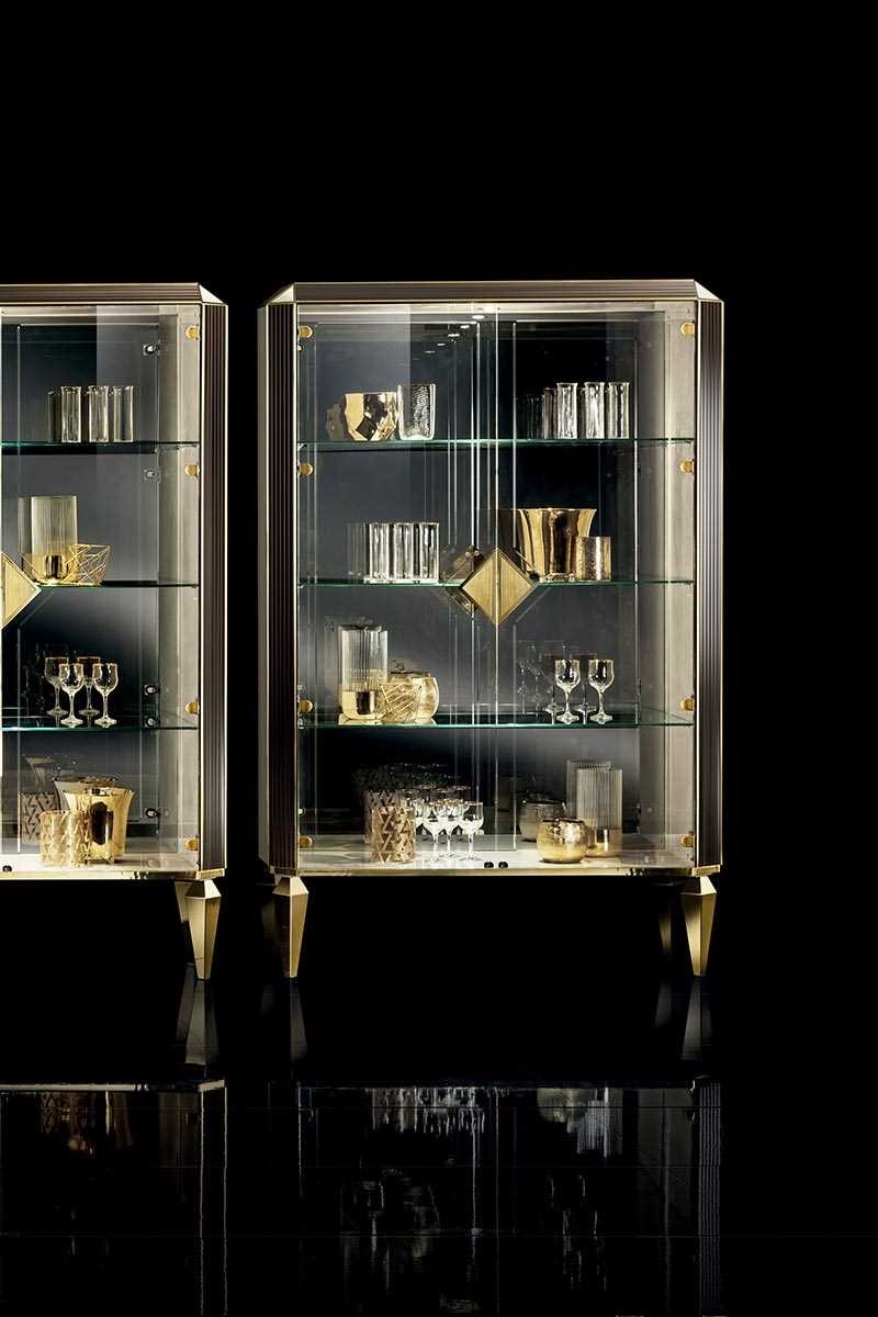 Szklane witryny Bellezza pozwalają na wydobycie światła. Szklany front osadzony jest w ramie z wykończeniem wiązu i jasnozłotym słojem. Dzięki temu rozwiązaniu witryna jest idealna do eksponowania i prezentowania zawartości.
